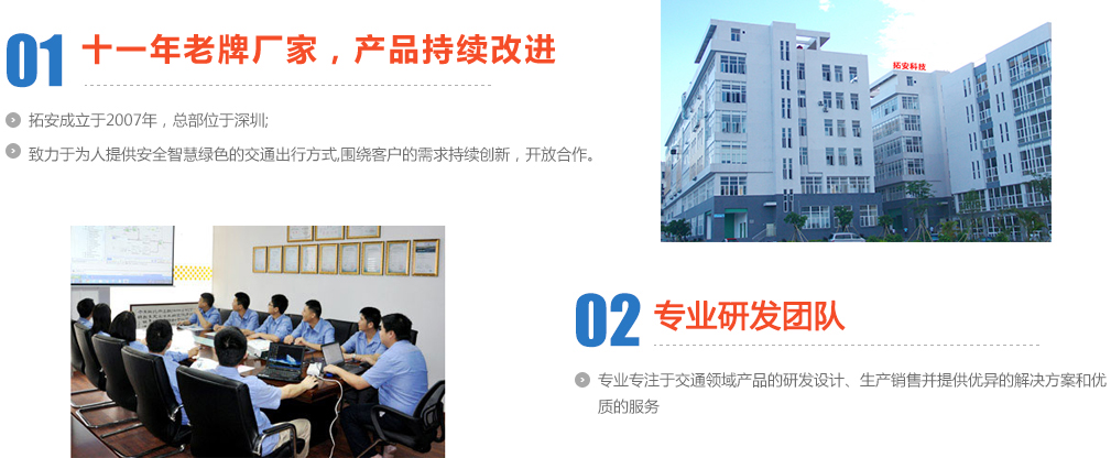 深圳市拓安科技有限公司是一家專業研發、生產、銷售太陽能LED智能交通設備為一體的高新技術企業。主要產品有太陽能道釘、太陽能爆閃燈、太陽能標志牌、太陽能黃閃燈、行車安全誘導霧燈、LED肩燈廠家、LED交通信號燈、太陽能移動紅綠燈、隧道誘導燈、隧道電光標志、車道指示器、LED肩燈、太陽能一體化路燈等。……查看更多》